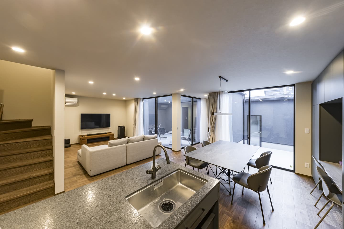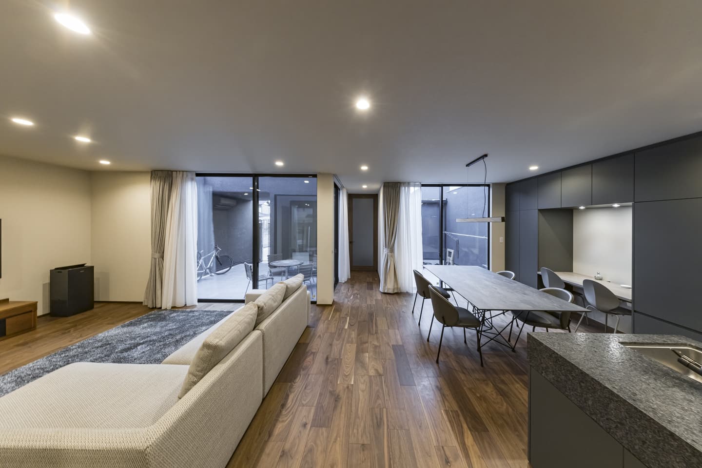 周りから家の中が見えないプライバシーを確保しながら、家の中は暗くなく開放的で明るいリビングやキッチンにするようにお願いしました。
