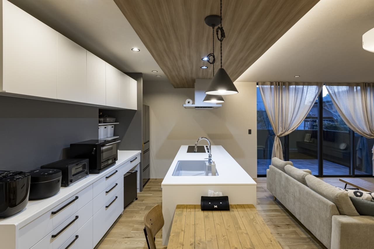 夫婦2人が綺麗好きだけど面倒くさがりなので、掃除とかメンテナンスをしやすい家にしたいと要望しました。またLDKにつながったタイルデッキを提案してもらいBBQを楽しめる空間にしていただきました。いろんな事を要望しすぎて忘れてしまいましたが、欲望願望をギュッと詰め込んだ家にしたいと紙に書いて出したと思います。